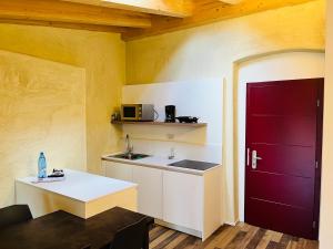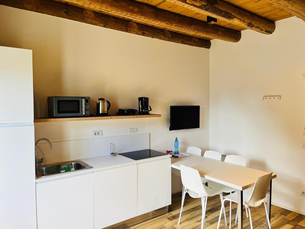 Sie genießen Gartenblick. Alle Zimmer in der Pension sind klimatisiert und verfügen über einen Sitzbereich, einen Flachbild-Sat-TV, eine Küche, einen Essbereich und ein eigenes Bad mit einem Haartrockner, einer Badewanne oder einer Dusche und kostenlosen Pflegeprodukten.