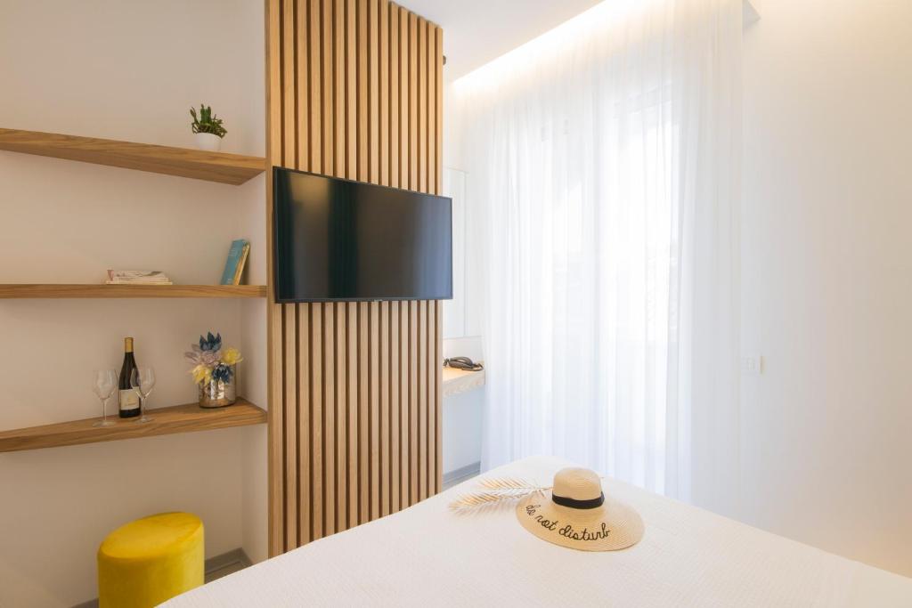 Dies ist ein brandneues, komplett renoviertes und schallisoliertes Zimmer in der 4. oder 5. Etage mit exklusivem Design, einer großen Dusche, einem zum Meer ausgerichteten Balkon und mit Dorelan-Betten und -Matratzen.