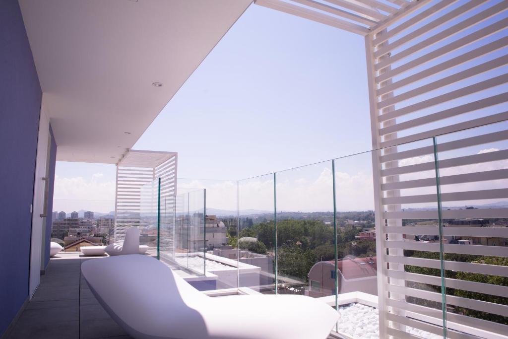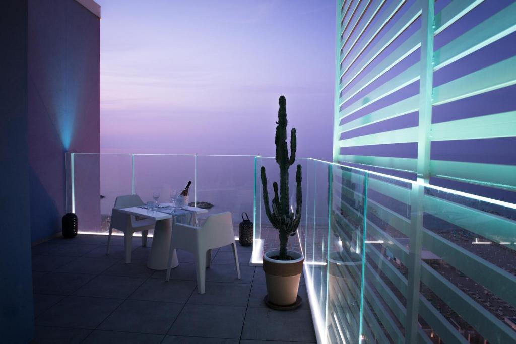 Dies ist ein brandneues, schallisoliertes Zimmer in der 7. Etage, komplett renoviert mit exklusivem Design, großer Panoramaterrasse mit 360 Grad Blick, mit Gartenmöbeln und Sonnenliege, Dorelan-Betten und Matratzen sowie einer Erlebnisdusche.