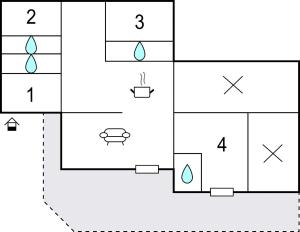 Diese Ferienwohnung mit Klimaanlage besteht aus 4 Schlafzimmern, einem Wohnzimmer, einer voll ausgestatteten Küche mit einem Kühlschrank und einer Kaffeemaschine sowie 4 Badezimmern mit einer Dusche.