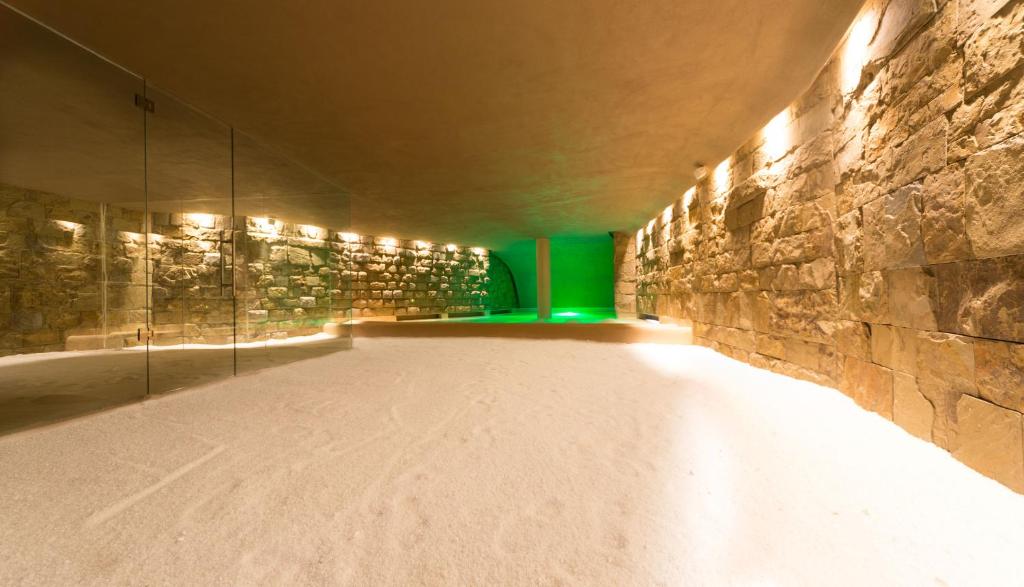 Gerne können Sie Ihre Mahlzeit draußen auf der Veranda des Restaurants genießen. Das Wellnesscenter verfügt über eine Sauna, eine Salzgrotte, Innenpools und einen Whirlpool. Buchen Sie in der Unterkunft auch Schönheitsanwendungen und Massagen.