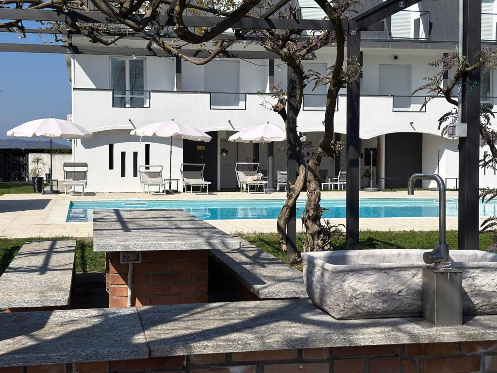 The private pool is a top feature of this apartment. Boasting a private entrance, this air-conditioned apartment comes with 1 living room, 1 separate bedroom and 1 bathroom with a shower and a hairdryer. Guests will find a stovetop, a refrigerator, a dishwasher and kitchenware in the kitchen. The apartment also includes a barbecue. Featuring a terrace with lake views, this apartment also features a washing machine and a flat-screen TV with streaming services. The unit has 2 beds.