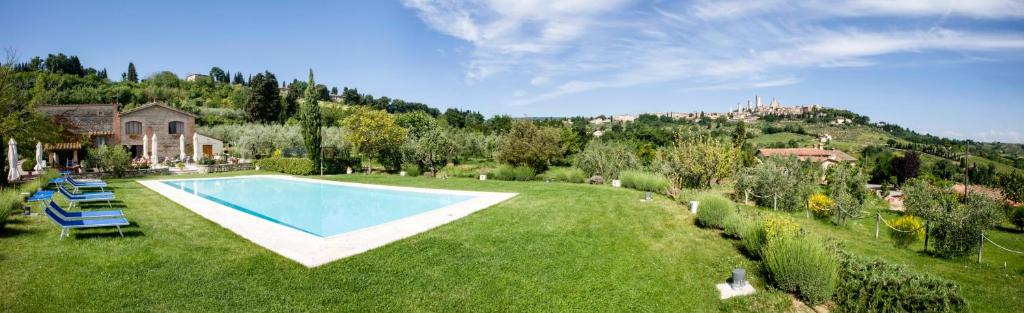 Die Unterkunft B&B Ponte a Nappo San Gimignano, die in San Gimignano gelegen ist, bietet Stadtblick sowie ein Restaurant, einen Tourenschalter, eine Bar, einen Garten, einen Außenpool und eine Terrasse.
