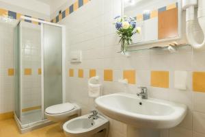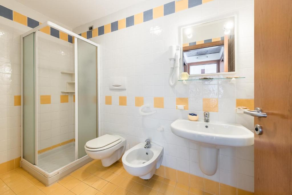 Ein voll ausgestattetes eigenes Badezimmer mit einer Dusche und einem Haartrockner ist vorhanden. Der Wellnessbereich der Unterkunft Bosco Canoro Bibione Resort besteht aus einem Whirlpool und einem Thermalbad.