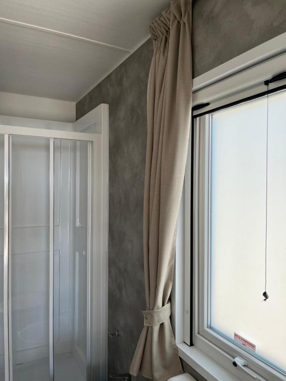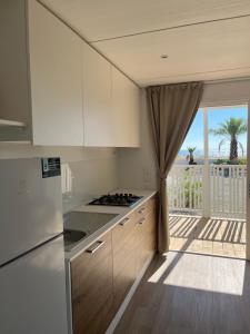 Featuring a private entrance, this air-conditioned mobile home consists of 1 living room, 2 separate bedrooms and 2 bathrooms with a shower. The mobile home's kitchen, which features a refrigerator and kitchenware, is available for cooking and storing food. The mobile home provides a seating area, a dining area, a wardrobe as well as a terrace with sea views. The unit offers 4 beds.