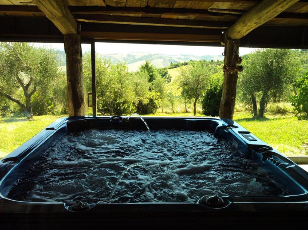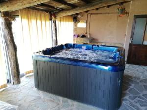Guests will have a special experience as this holiday home provides a pool with a view, a hot tub and a fireplace. Featuring a private entrance, this holiday home comprises 1 living room, 1 separate bedroom and 1 bathroom with a shower and a bidet. Guests will find a stovetop, a refrigerator, kitchenware and an oven in the fully equipped kitchen. The holiday home also provides guests with a barbecue. The holiday home features tiled floors, a seating area with a flat-screen TV, a washing machine, a coffee machine as well as garden views. The unit offers 3 beds.