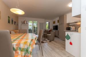 Diese Ferienwohnung mit einem Balkon und Bergblick bietet 1 Schlafzimmer, ein Wohnzimmer, einen TV, eine gut ausgestattete Küche mit einem Kühlschrank und einem Geschirrspüler sowie 1 Badezimmer mit einer Dusche.