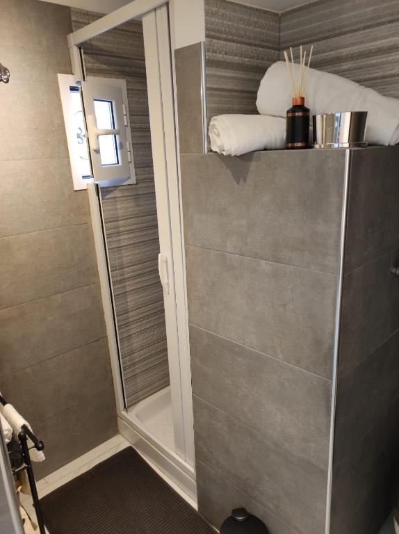 Diese Ferienwohnung mit Klimaanlage und 1 Schlafzimmer verfügt über 1 Badezimmer, ausgestattet mit einem Bidet, einer Dusche und kostenlosen Pflegeprodukten.