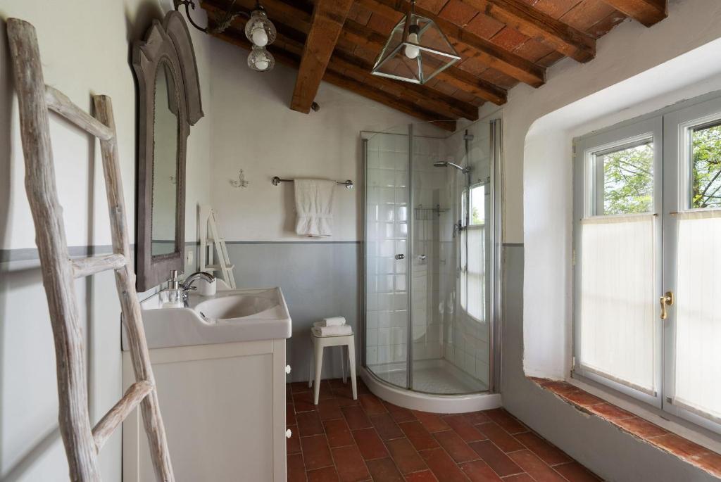 Dieses Landhaus ist 38 km von Fortezza da Basso und 38 km von Palazzo Vecchio entfernt. Dieses Landhaus besteht aus 5 Schlafzimmern, einem Wohnzimmer, einer voll ausgestatteten Küche mit einem Kühlschrank und einer Kaffeemaschine sowie 3 Badezimmern mit einem Bidet und einer Dusche.