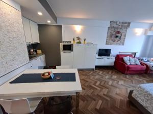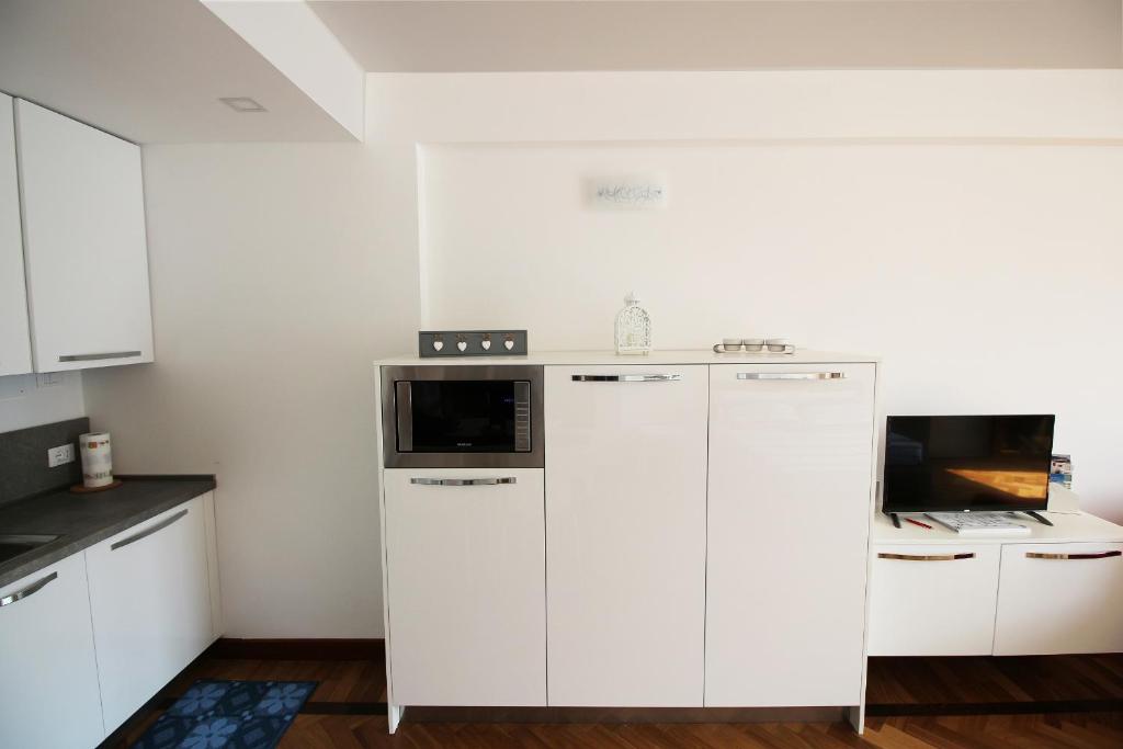 Die Küche ist versehen mit einem Kühlschrank und einer Mikrowelle, einer Herdplatte sowie einer Kaffeemaschine und einem Wasserkocher. Die Mitarbeitenden an der Rezeption, die Englisch und Italienisch sprechen, helfen Gästen rund um die Uhr gerne weiter.