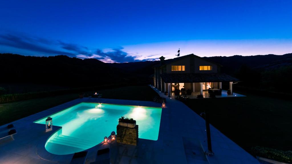 Gelegen in Apecchio bietet die Unterkunft CHIPIERI 4&2, Emma Villas Übernachtungsmöglichkeiten mit einem eigenen Pool, einer Veranda / Patio und Gartenblick. Sie bietet einen saisonalen Außenpool, einen Garten, Poolblick und kostenloses WLAN in der ganzen Unterkunft.