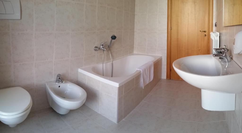This triple room features a balcony, dining area and private bathroom with a bath.