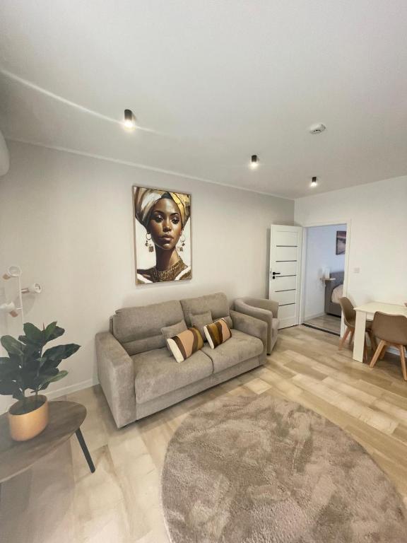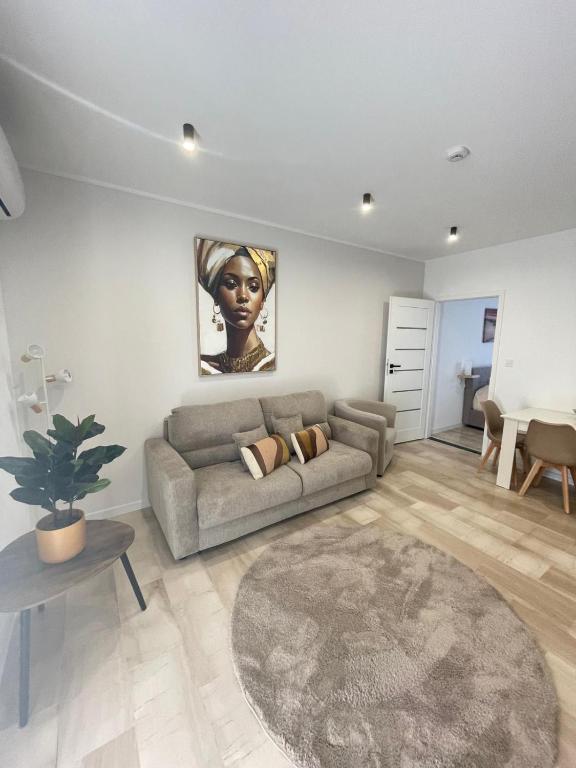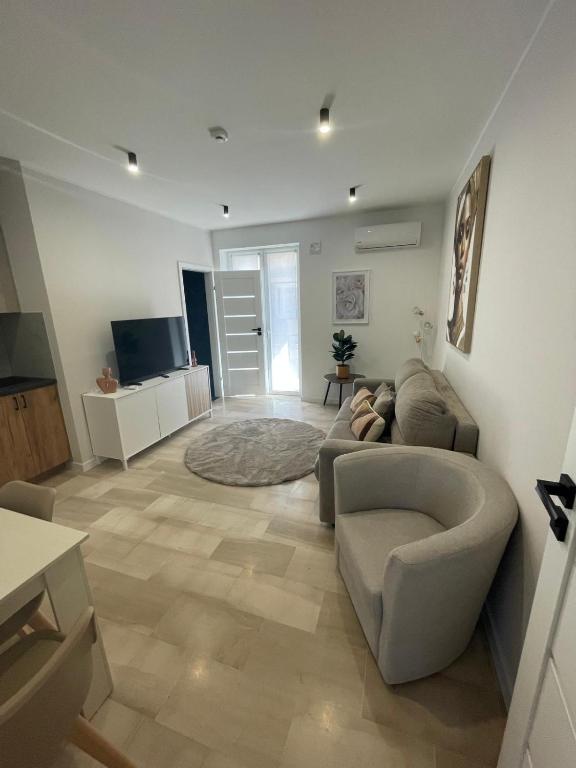 The apartment's kitchen, which has a refrigerator and kitchenware, is available for cooking and storing food. This apartment is air-conditioned and features a seating area with a flat-screen TV, a private entrance, a tea and coffee maker, a dining area, as well as a wardrobe. The unit offers 2 beds.