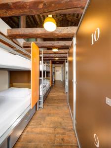 Dieser Schlafsaal ist mit Klimaanlage ausgestattet. Jedes Etagenbett bietet eine Lampe, ein persönliches Regal und einen Spind. Kissen, Bettdecken und Bettwäsche werden zur Verfügung gestellt.