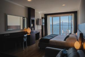 Dieses geräumige, klimatisierte Zimmer verfügt über einen Balkon mit Blick auf den Lago Maggiore. Zu den Einrichtungen gehören ein Safe, ein Flachbild-TV und eine Minibar. Im Bad liegen kostenlose Pflegeprodukte und ein Haartrockner für Sie bereit.