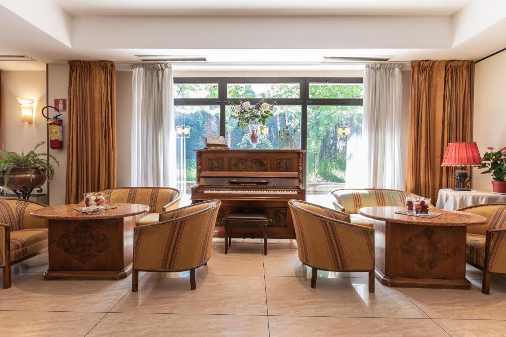 Ein Fernseher mit Satelliten- und Pay-per-view-Kanälen sowie eine Minibar und ein Schreibtisch zählen zur Ausstattung der Zimmer im Michelangelo. WLAN steht Ihnen im gesamten Hotel zur Verfügung. Traditionelle italienische und regionale Küche serviert Ihnen das Restaurant des Hotels Contessa Matilde in gemütlicher Atmosphäre.