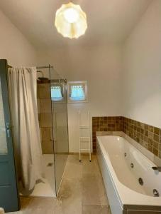 This holiday home features a hot tub. Boasting a private entrance, this air-conditioned holiday home features 1 living room, 1 separate bedroom and 1 bathroom with a bath and a shower. Guests can make meals in the kitchen that has a stovetop, a refrigerator, kitchenware and a microwave. Featuring a terrace with garden views, this holiday home also features a tea and coffee maker and a flat-screen TV. The unit has 2 beds.