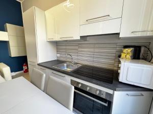 Diese Ferienwohnung mit Klimaanlage besteht aus 1 Schlafzimmer, einem Wohnzimmer, einer voll ausgestatteten Küchenzeile mit einem Kühlschrank und einer Kaffeemaschine sowie 1 Badezimmer mit einem Bidet und einer Dusche.