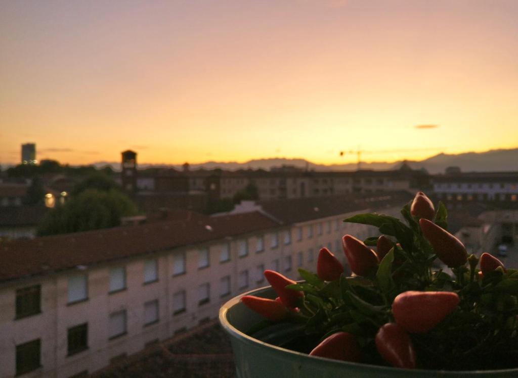 Die Unterkunft La Balounette - attico centrale panoramico con garage verfügt über Stadtblick und Übernachtungsmöglichkeiten mit einer Terrasse und einem Balkon, ungefähr 1,7 km von Mole Antonelliana entfernt.