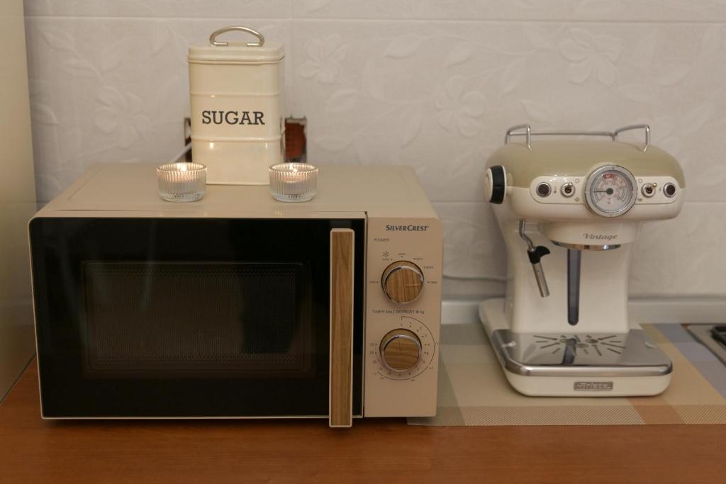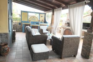 The double room offers air conditioning, a coffee machine, as well as a private bathroom boasting a bath and a bidet. The well-equipped kitchen has a stovetop, a refrigerator, kitchenware and a microwave. The double room features tiled floors, a seating area with a flat-screen TV, a dining area, a wardrobe as well as garden views. The unit has 1 bed.
