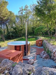 This villa boasts a hot tub and a sauna. Featuring a private entrance, this air-conditioned villa comprises 2 living rooms, 1 separate bedroom and 2 bathrooms with a shower and a bidet. Guests will find a stovetop, a refrigerator, a dishwasher and kitchenware in the well-fitted kitchen. The villa also provides guests with a barbecue. The unit features a washing machine, garden views, a terrace and wine/champagne is featured for guests. The unit offers 1 bed.