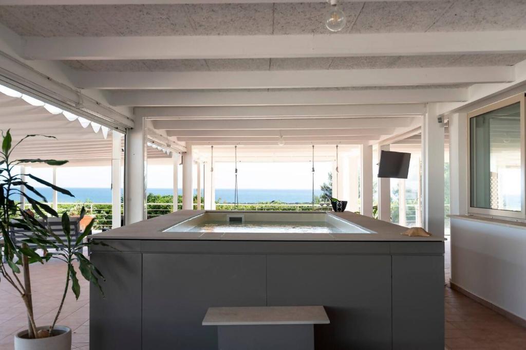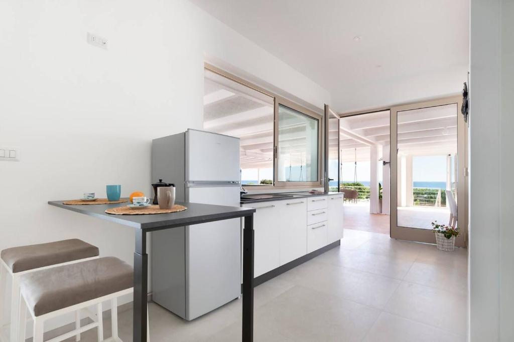 Die Küche ist versehen mit einem Kühlschrank und einem Geschirrspüler, einer Mikrowelle sowie einer Kaffeemaschine. Die Gäste können in der Unterkunft Le Secche Suite & House 2 by Salento Prime den Innenpool nutzen.