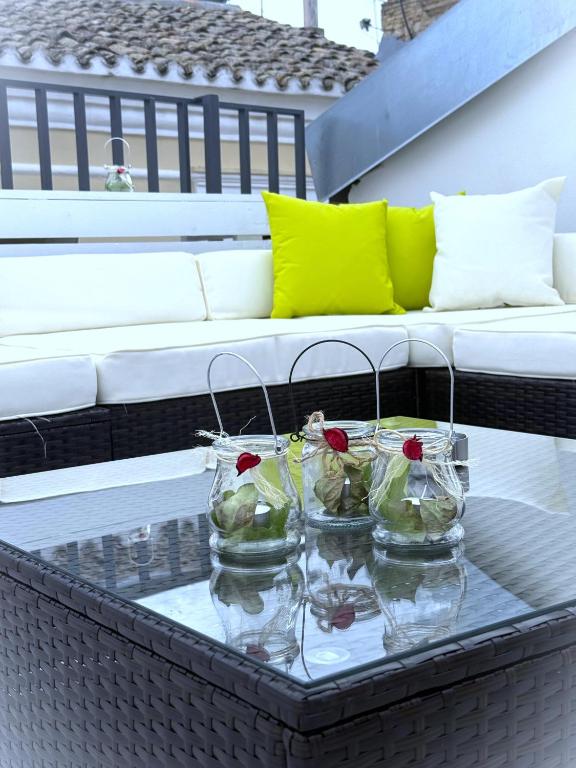 Diese Ferienwohnung mit Klimaanlage besteht aus 1 Schlafzimmer, einem Wohnzimmer, einer voll ausgestatteten Küche mit einem Kühlschrank und einer Kaffeemaschine sowie 1 Badezimmer mit einem Bidet und einer Dusche.