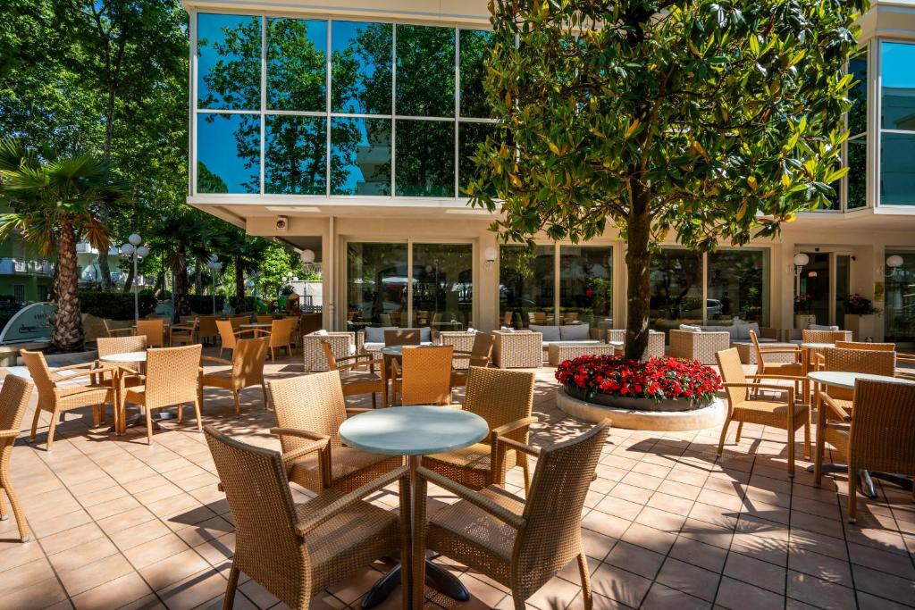 Die Unterkunft Michelangelo Cesenatico hat kostenlose Fahrräder, einen Garten und eine Sonnenterrasse mit Pool und als Buffet angebotenes Frühstück in Cesenatico. Die Unterkunft verfügt über ein Restaurant und hat außerdem eine Gemeinschaftslounge sowie eine Sauna und einen Whirlpool.