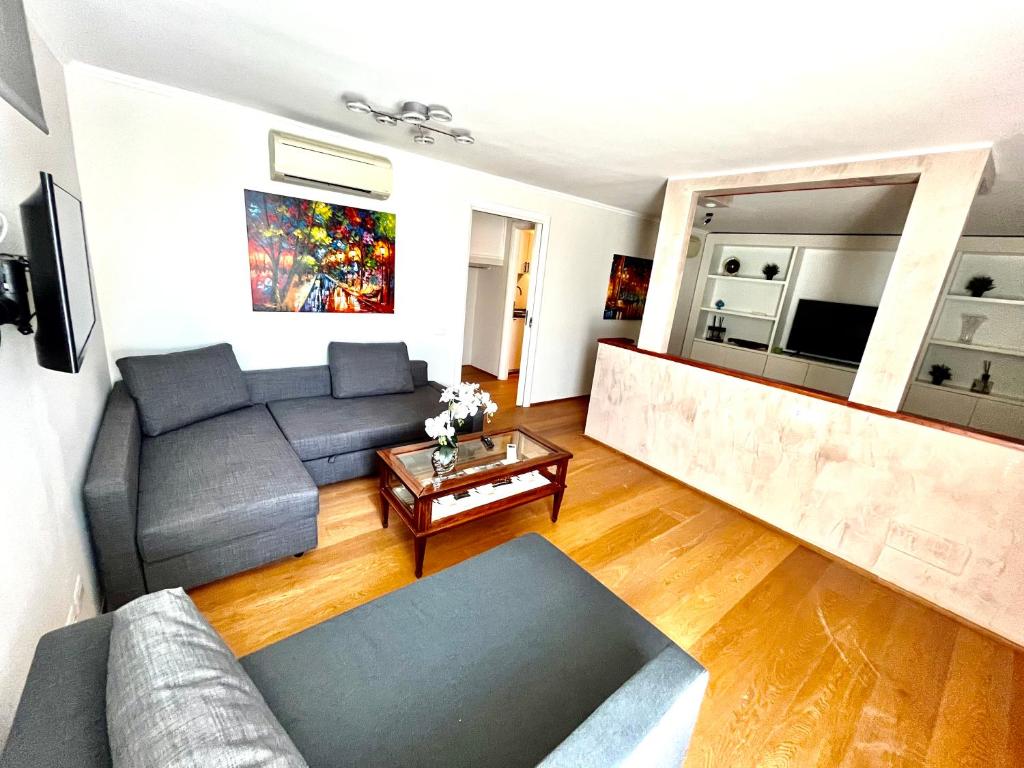 Diese Ferienwohnung mit Klimaanlage besticht durch Sitzplätze, eine Küche mit einem Kühlschrank und Flachbild-TV. Für zusätzlichen Komfort kann die Unterkunft Handtücher und Bettwäsche gegen Aufpreis bieten.