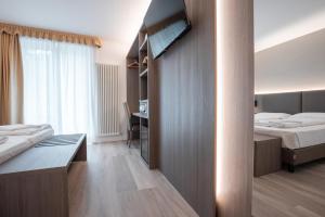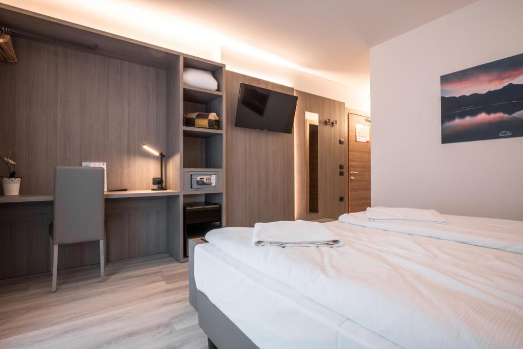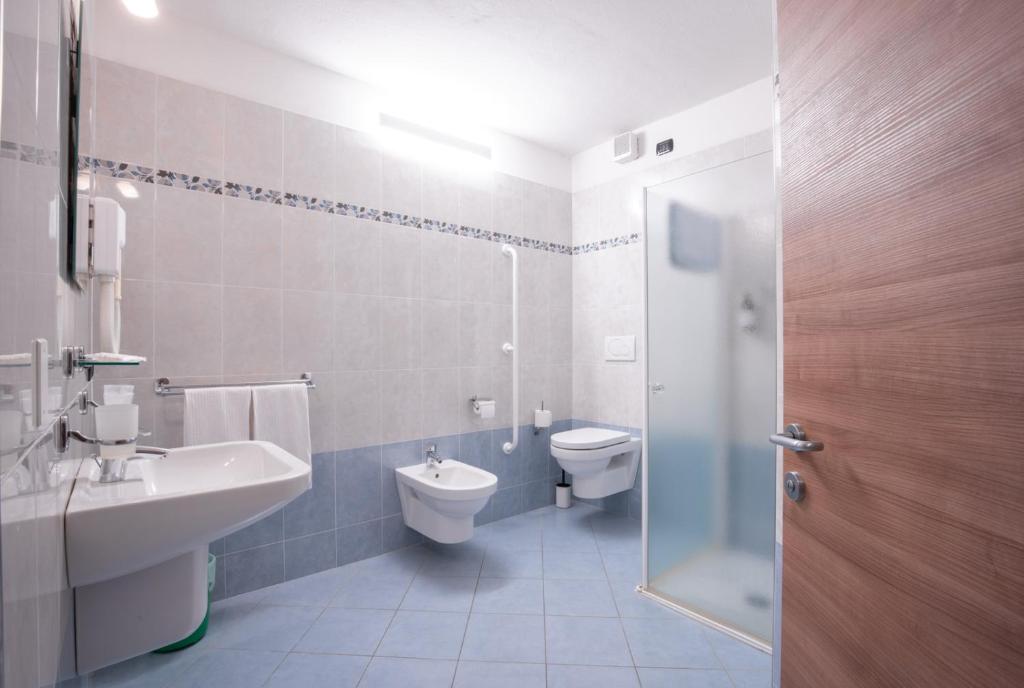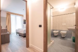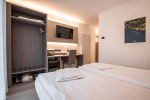 Ein eigenes Badezimmer ist ausgestattet mit kostenlosen Pflegeprodukten, einem Haartrockner und einer Dusche. Alle Gästezimmer in der Unterkunft Panoramic Hotel San Carlo Ledro sind eingerichtet mit einem Flachbild-TV mit Satellitenkanälen und einem Safe.