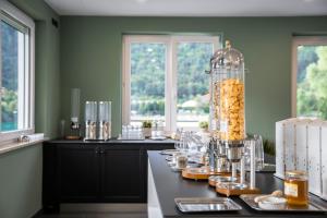 Die Unterkunft bietet Panoramafenster mit Blick auf den See.