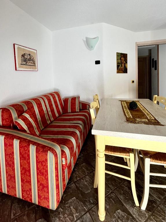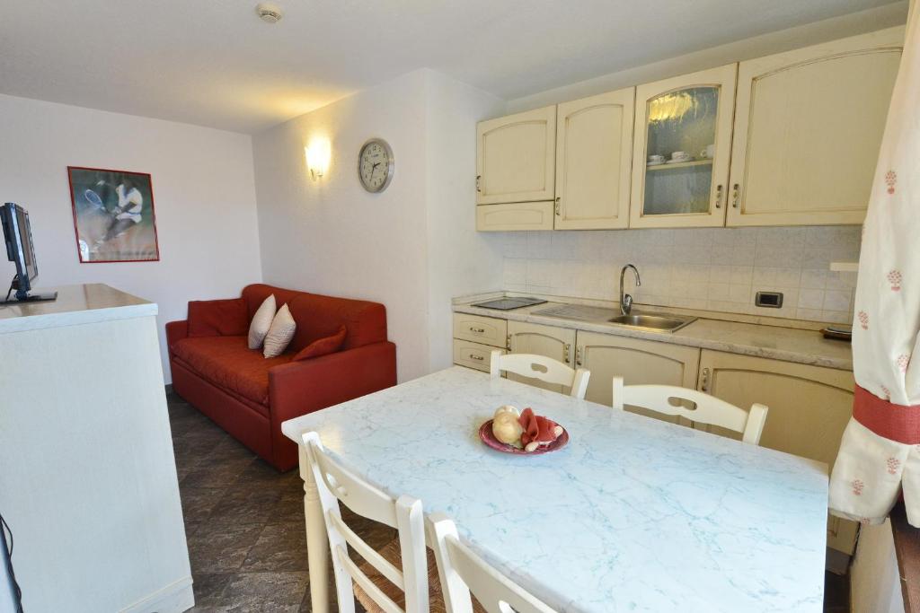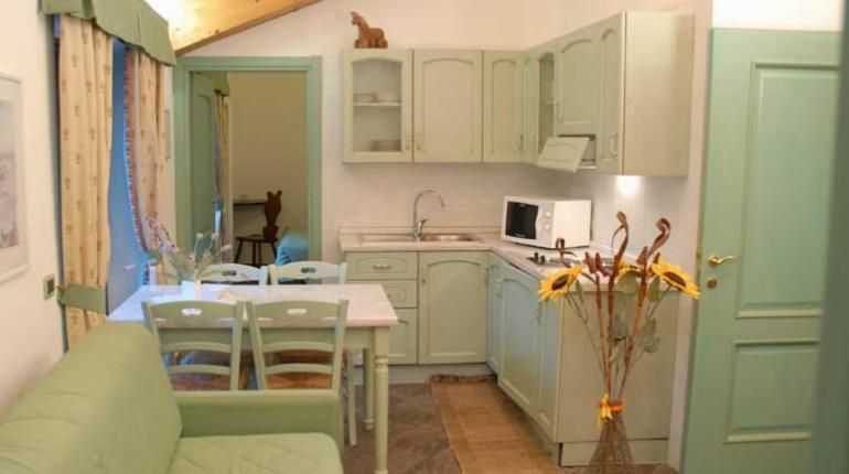 Set on 2 levels, this apartment has 1 bedroom and a living room with kitchenette downstairs and a further 2 single beds on a raised area. Free Wi-Fi is included.
