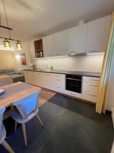 Diese Ferienwohnung im alpinen Stil mit hellen Holzmöbeln verfügt über einen Wohn- und Essbereich mit einer Küchenzeile und einem Doppelschlafsofa, 2 Schlafzimmer mit Doppelbett und ein eigenes Bad.