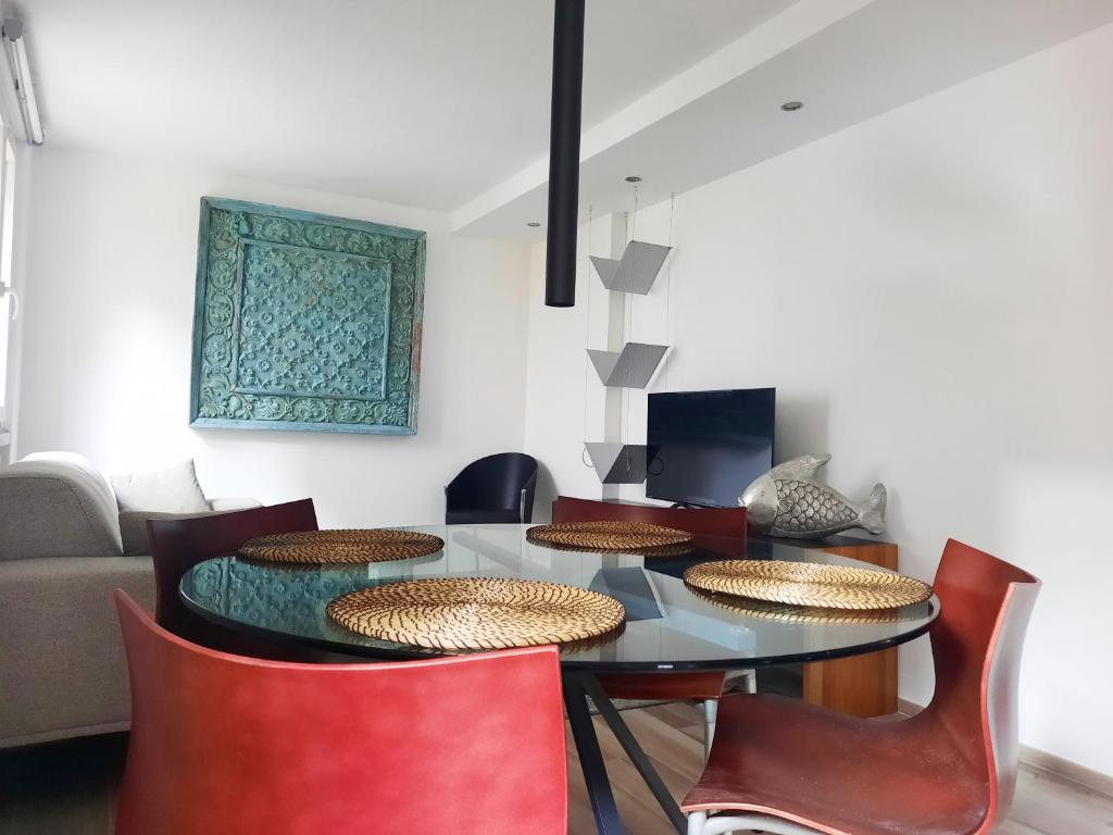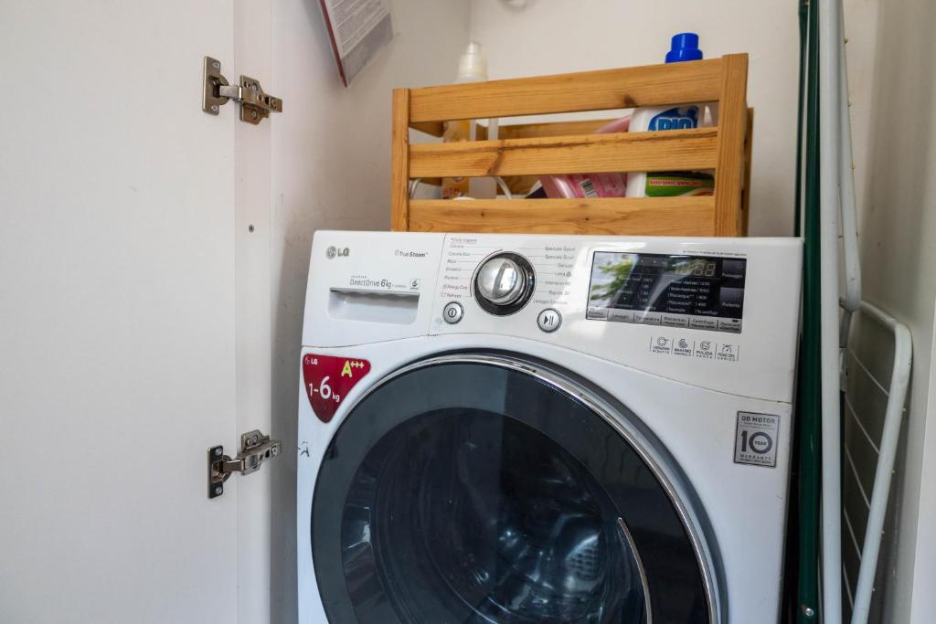 The fully equipped kitchen features a stovetop, a refrigerator, kitchenware and a microwave. The holiday home provides air conditioning, a washing machine, as well as a private bathroom featuring a shower and a bidet.