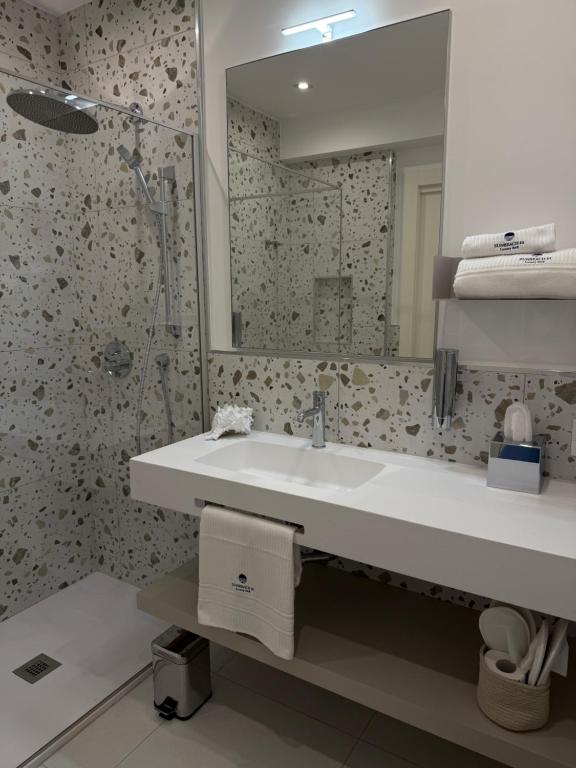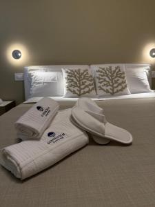 Dieses Doppelzimmer verfügt über Klimaanlage, schallisolierte Wände, eine Terrasse mit Meerblick sowie ein eigenes Bad mit Dusche.