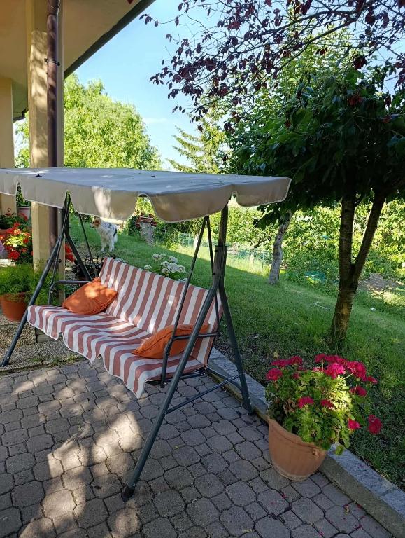 Guests can make meals in the kitchen that features a refrigerator, kitchenware, a microwave and a tea and coffee maker. This air-conditioned double room is comprised of a flat-screen TV with streaming services, a shared bathroom as well as a terrace with garden views. The unit has 1 bed.