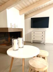 The pool with a view and fireplace are the special features of this apartment. Boasting a private entrance, this air-conditioned apartment comes with 1 living room, 3 separate bedrooms and 2 bathrooms with a walk-in shower and a bidet. Guests can make meals in the kitchen that features a refrigerator, a dishwasher, kitchenware and an oven. The spacious apartment features a washing machine, soundproof walls, a tea and coffee maker, a flat-screen TV with cable channels, as well as sea views. The unit has 5 beds.