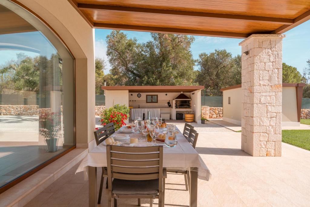 Die Unterkunft Villa Gelso Bianco con Piscina besticht durch klimatisierte Übernachtungsmöglichkeiten mit einer Veranda / Patio und ist in San Michele Salentino gelegen. Diese Villa hat einen eigenen Pool, einen Garten, einen Grill, kostenloses WLAN und einen kostenlosen Privatparkplatz.