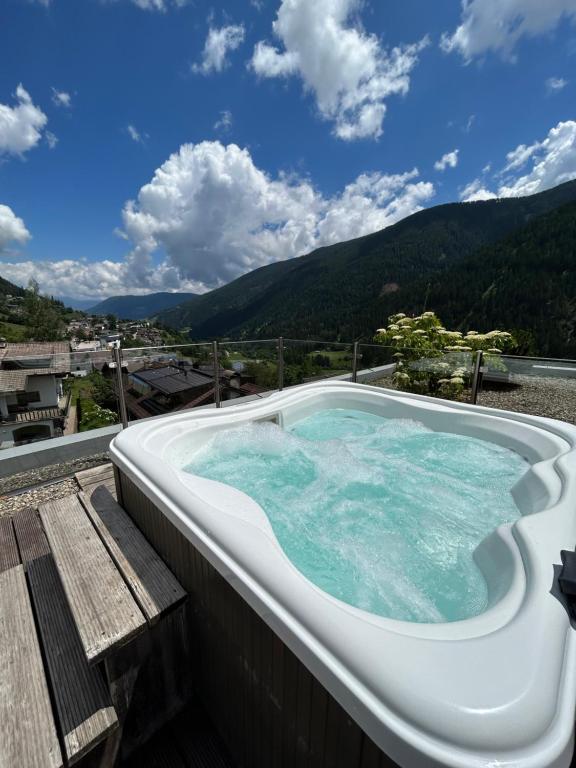 Neben speziellen Matratzen aus reiner Wolle bietet dieses Design-Zimmer Panoramablick auf die Berge oder das Tal, einen LCD-Sat-TV und einen möblierten Balkon oder eine möblierte Terrasse. Ein Zimmer verfügt über eine Sauna.