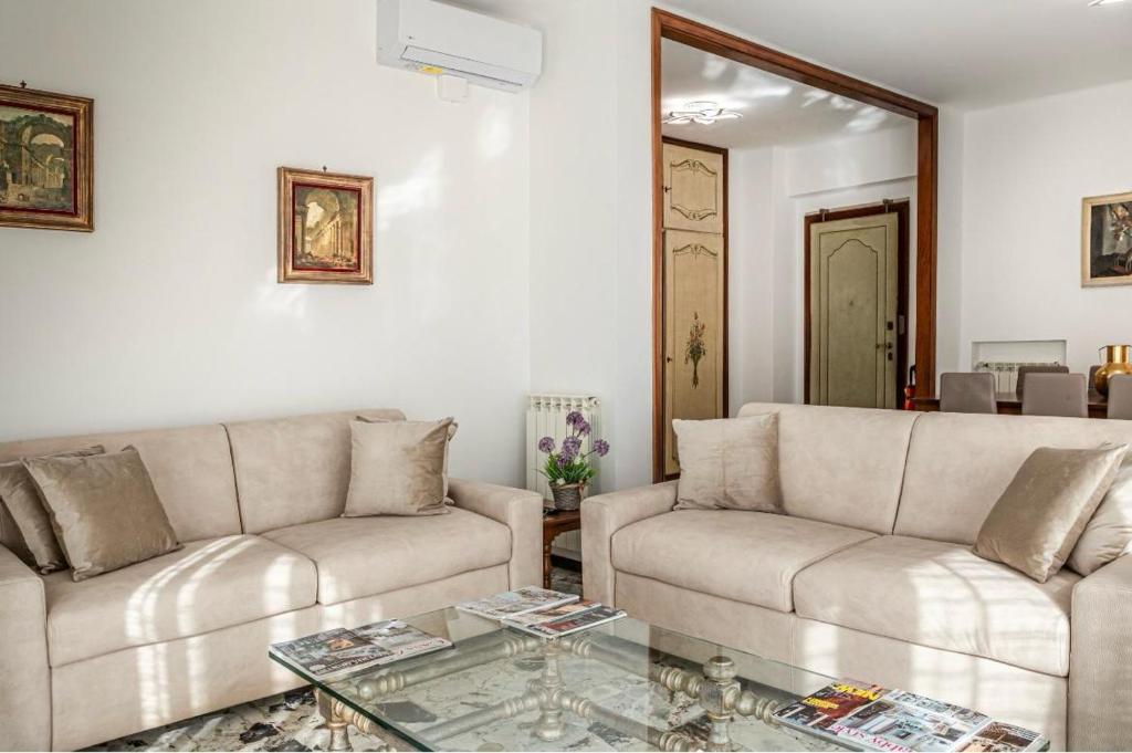 The spacious apartment is composed of 2 bedrooms, a living room, a fully equipped kitchen, and 2 bathrooms. A flat-screen TV is provided. University of Genoa is 31 miles from the apartment, while Castello Brown is 21 miles away.