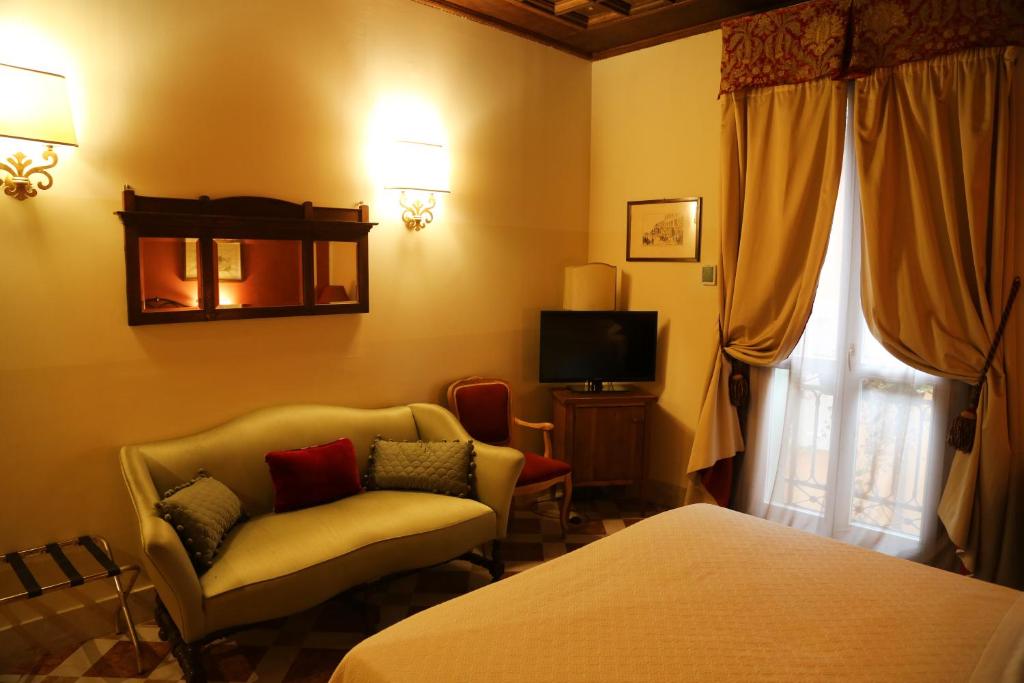 All air-conditioned rooms have either frescoed or wooden-beamed ceilings. Some offer a French balcony with views over the city. The private bathroom comes with a bath or shower and a bidet. A breakfast buffet is served daily in the common area, including freshly brewed coffee or cappuccino, sweet pastries and also cheeses and cold cuts.