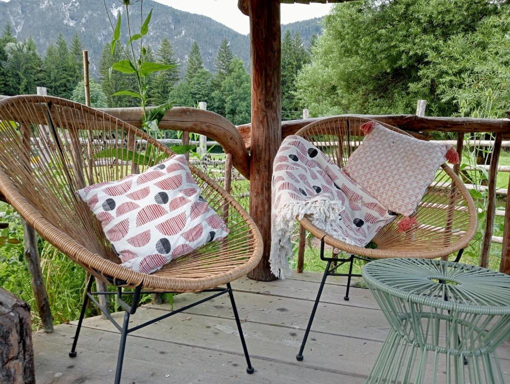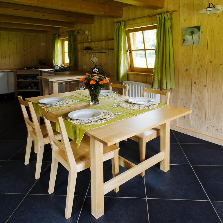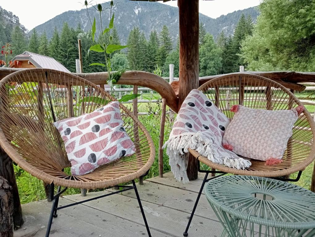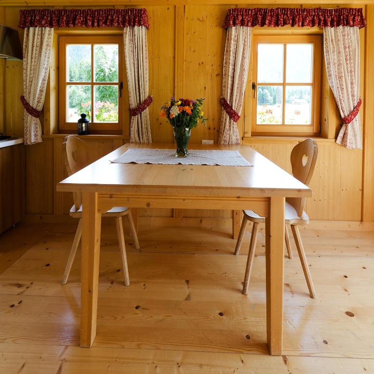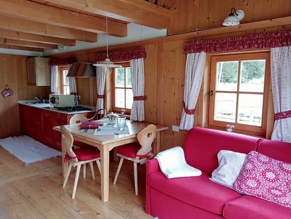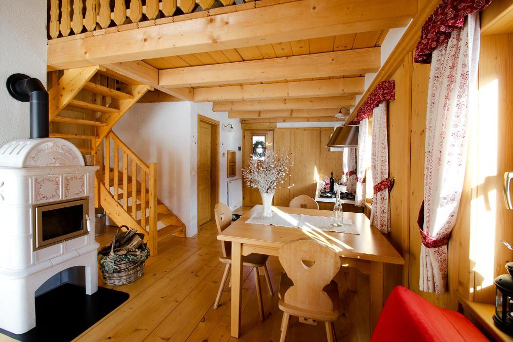 The chalets at the Alpi Giulie come with a private bathroom and a kitchen with dining area.