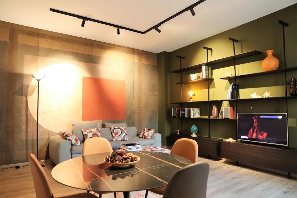 Featuring a private entrance, this air-conditioned apartment is consisted of of 1 living room, 2 separate bedrooms and 1 bathroom with a walk-in shower and a bidet. Guests can make meals in the kitchen that is fitted with a stovetop, a refrigerator, a dishwasher and kitchenware. The spacious apartment offers a washing machine, soundproof walls, a tea and coffee maker, a flat-screen TV with cable channels, as well as city views. The unit offers 2 beds.