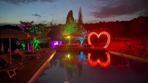 Guests will have a special experience as the double room offers a pool with a view. The kitchenette is equipped with a stovetop, a refrigerator and kitchenware. The double room provides a private entrance, a tea and coffee maker, a balcony with garden views as well as a private bathroom featuring a bath or a shower. The unit offers 2 beds.