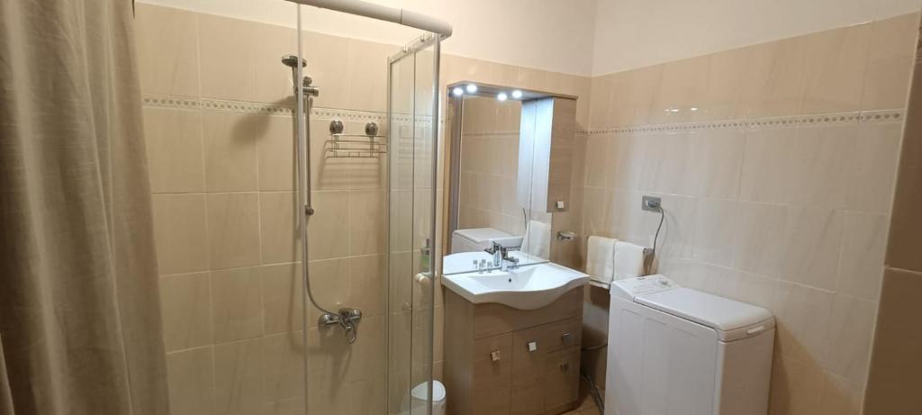 The air-conditioned apartment consists of 1 bedroom, a living room, a fully equipped kitchen with an oven and a coffee machine, and 1 bathroom with a bidet and slippers. A private entrance leads guests into the apartment, where they can enjoy some fruit and chocolates or cookies.