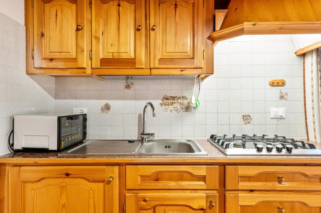 Appartamento Sas Ciapel is located in Arabba, just 4.9 miles from Pordoi Pass and 13 miles from Sella Pass. This property offers access to a balcony, free private parking, and free Wifi. The apartment has a children's playground and a sauna.