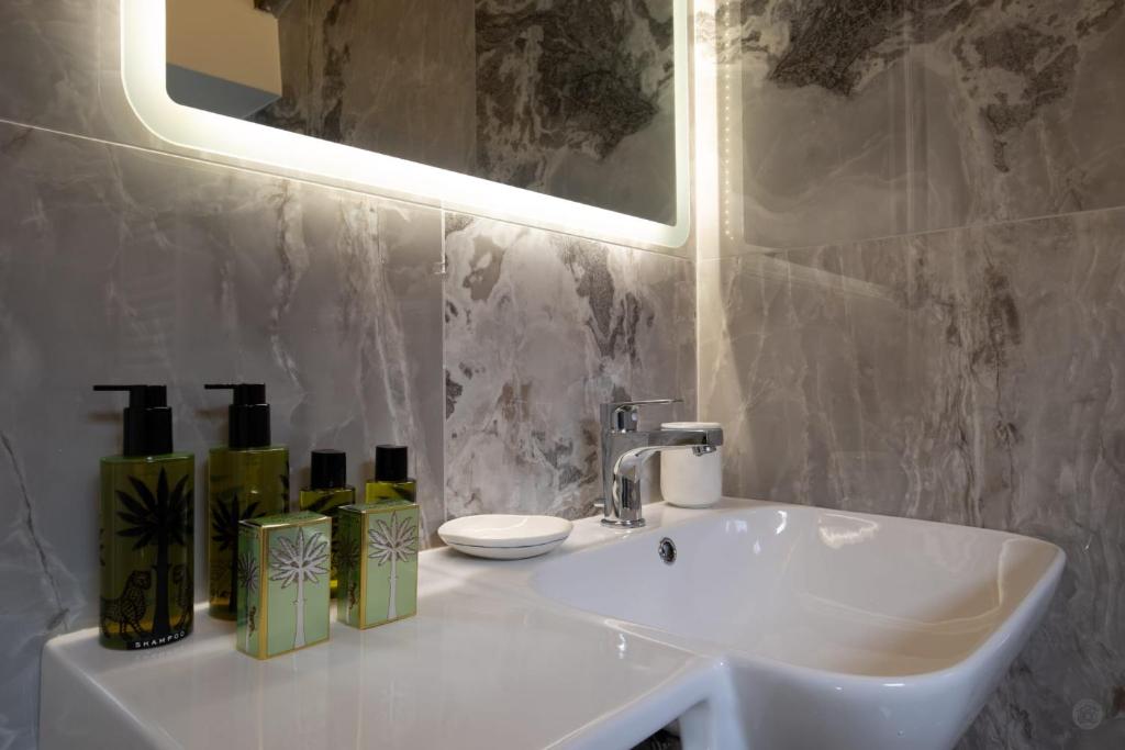 Featuring a private entrance, this air-conditioned apartment consists of 1 living room, 1 separate bedroom and 1 bathroom with a shower and a bidet. In the well-equipped kitchenette, guests will find a stovetop, a refrigerator, a dishwasher and kitchenware. The spacious apartment provides a tea and coffee maker, a seating area, a dining area, a flat-screen TV with streaming services, as well as city views. The unit offers 4 beds.