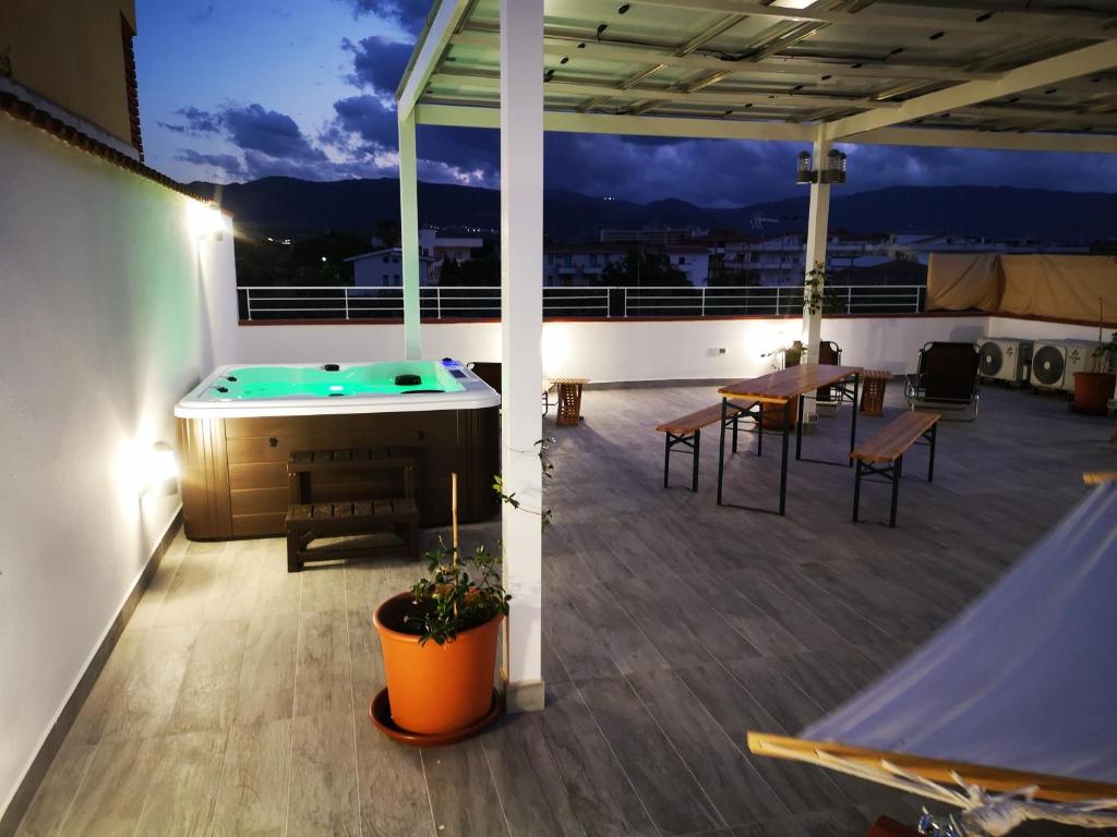 Guests will have a special experience as the quadruple room provides a rooftop pool. Meals can be prepared in the well-fitted kitchen, which is equipped with a stovetop, a refrigerator, kitchenware and an oven. This air-conditioned quadruple room includes a flat-screen TV with cable channels, a private bathroom as well as a terrace with sea views. The unit offers 3 beds.