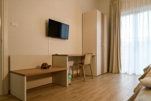 The spacious triple room offers air conditioning, a tea and coffee maker, a terrace with garden views as well as a private bathroom boasting a bath. The unit has 2 beds.