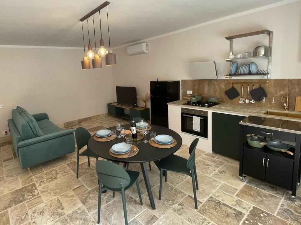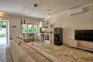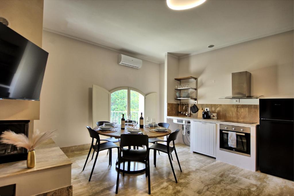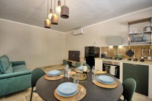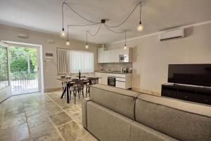 The apartment offers rooms with air conditioning, free private parking, and free Wifi. All units comprise a seating area with a sofa, a dining area, and a fully equipped kitchen with various cooking facilities, including a dishwasher, an oven, a fridge, and a stovetop.